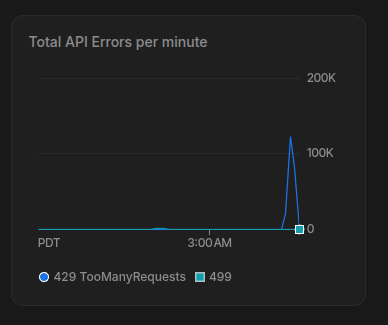 Oops. I just hit the endpoint with 125k requests. I miscalculated. I was kind of amazed that I made a DDOSing tool that slammed out 125,000 requests in a couple of seconds, but anyways.