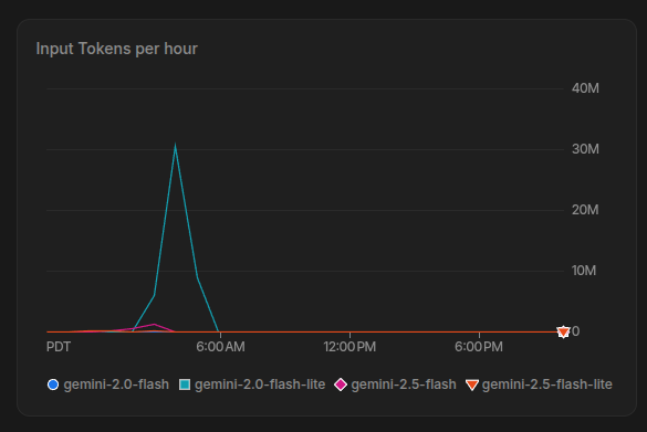 The first time I ran it, I was using Gemini 2.5 Flash Lite. It immediately imploded like this. It seems there’s an internal bug that grants it the benefit of insanity (repetitive tokens). I didn’t worry too much and rolled down to the 2.0 Lite endpoint instead.