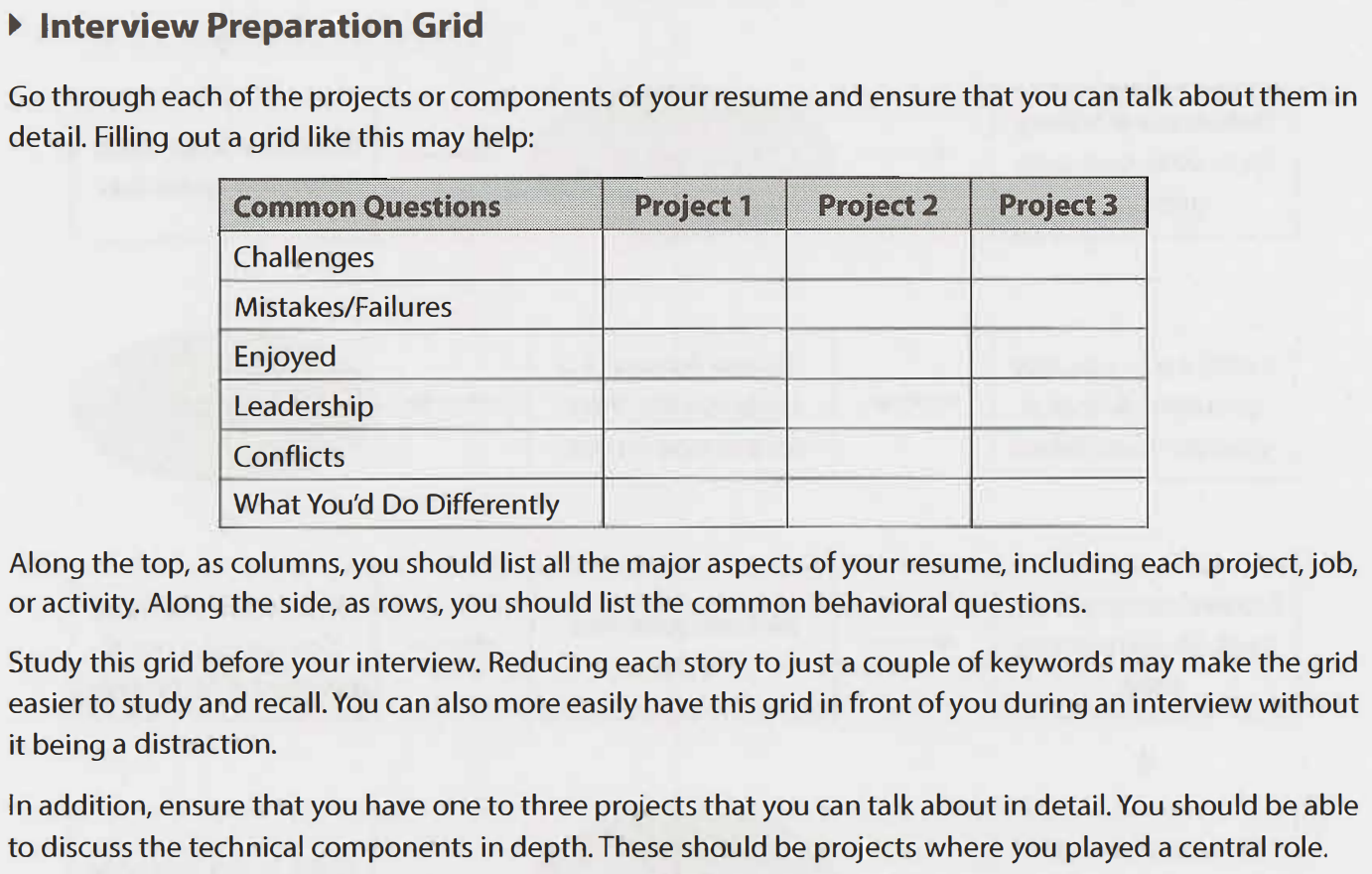 You should know these project stories end-to-end for everything on your resume. It would be quite weird if you didn’t know. At the same time, you wouldn’t really expect an intern to have a deep trove of experiences to pull from. But you should have at least 1-2 projects that you can talk about for 15 minutes or so if you are one.