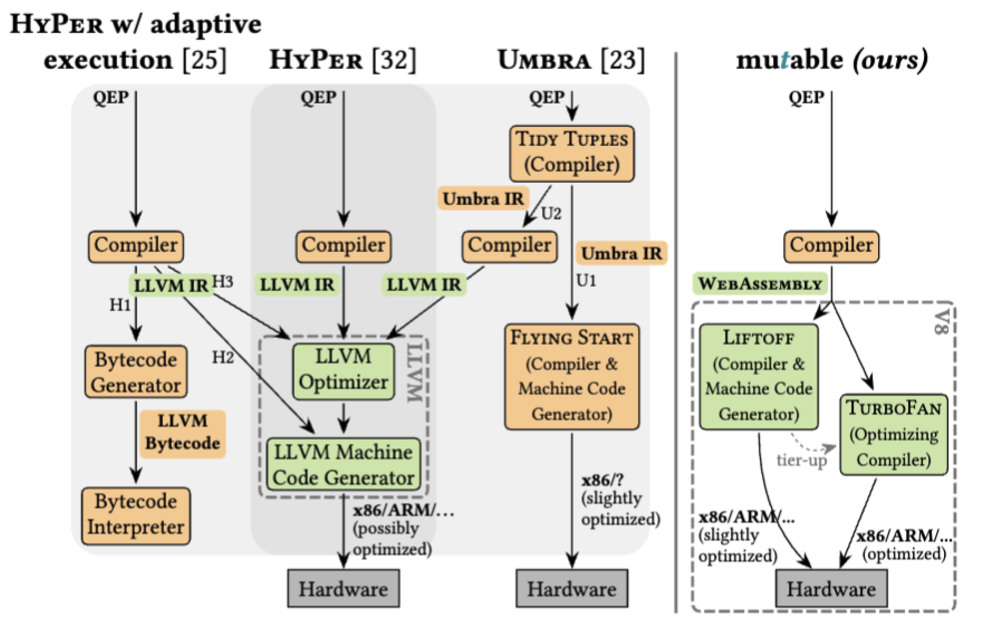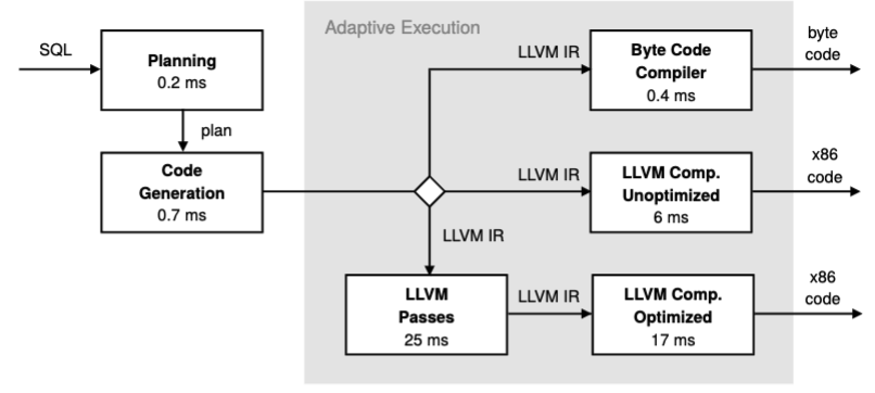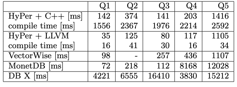 compile the entire Query Execution Plan (QEP) JIT compilation study.