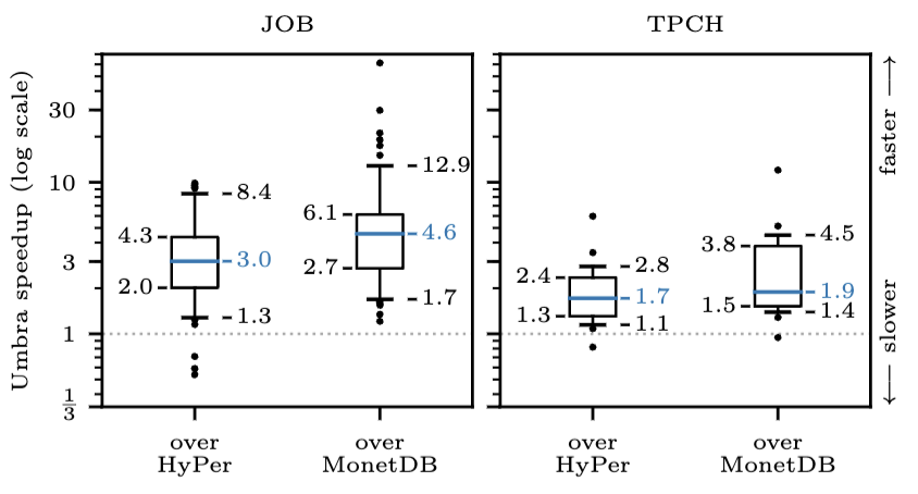 Due to branch-prediction optimisation, JIT compilers can be faster than ahead of time compilers. In 1999, a benchmarking paper measured four commercial databases and found of their execution time was spent fixing poor predictions Early branch misprediction analysis. Modern measurements still find of their query times are spent resolving hardware hazards, such as mispredictions, with improvements in this area making their queries faster Azul JIT perf report. Azul’s JIT compiler measurements also show that speculative optimisations in JIT can lead to performance gains Azul JIT blog.