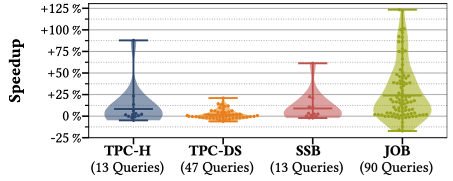 Most of the recent database research has focused on the optimiser, which is visible in various research. Common optimisation techniques include reordering join statements (flipping the left and right sides), and predicate push down, where a conditional/filter on a node is moved onto a lower node. PostgreSQL optimisation comparison. Additionally, extracting common subexpressions prevents recomputation, while constant folding evaluates constant operations inside the optimiser rather than at runtime. Despite these advances, query optimisers frequently produce suboptimal plans FishStore (SIGMOD ‘19) Approximate distinct counts. Another essential pattern involves genetic algorithms being used in optimisers for determining things like join orders, which can cause the outputted plan to be non-deterministic. Genetic optimizer study. A thesis could be written just to summarise the list of optimisations.